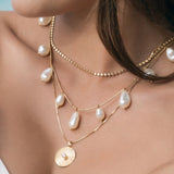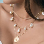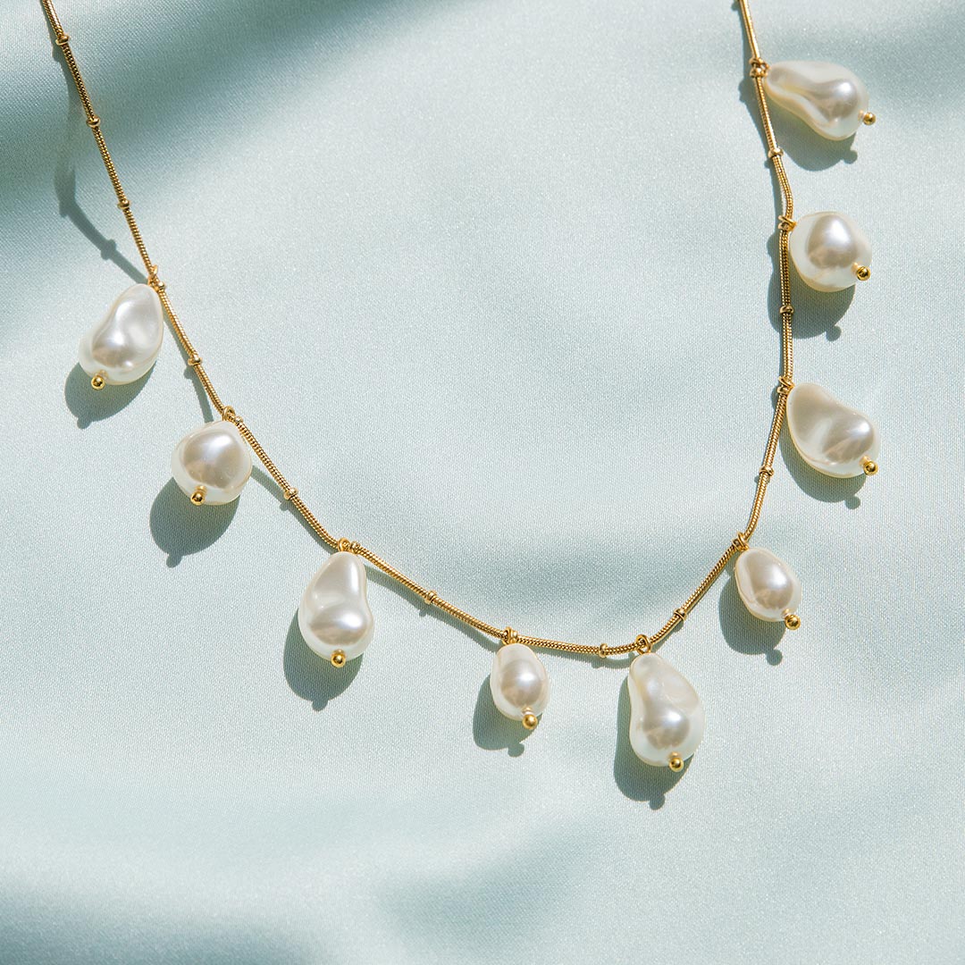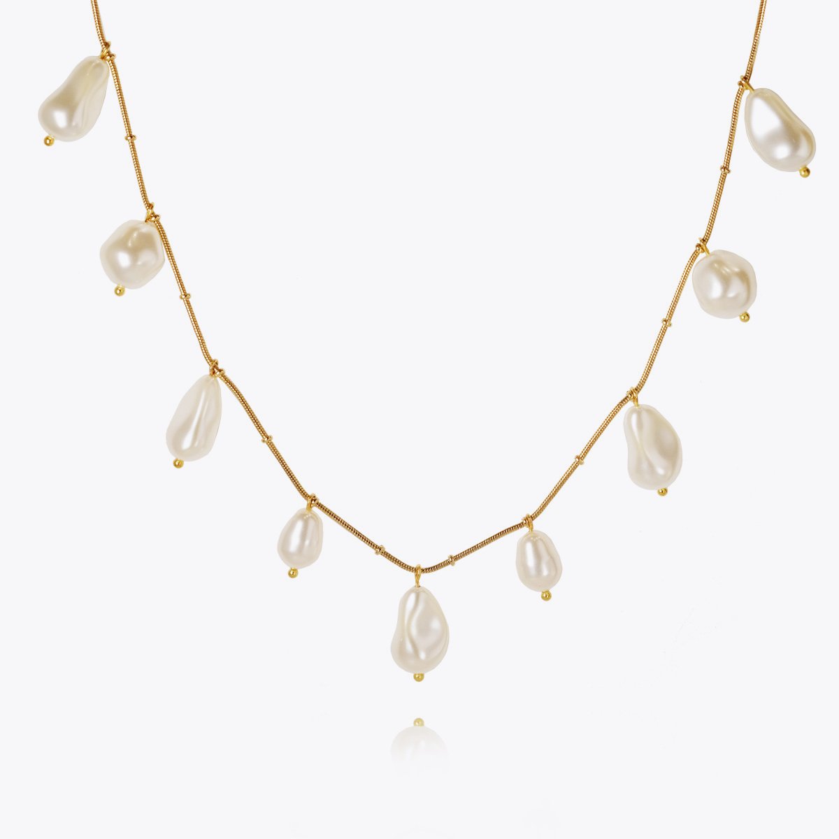 Convey class and confidence with our new Olympea Necklace. This gorgeous piece features 9 baroque-shaped Swarovski pearls and is perfect to combine with the new Odessa Necklace and our popular Diamond Chain.