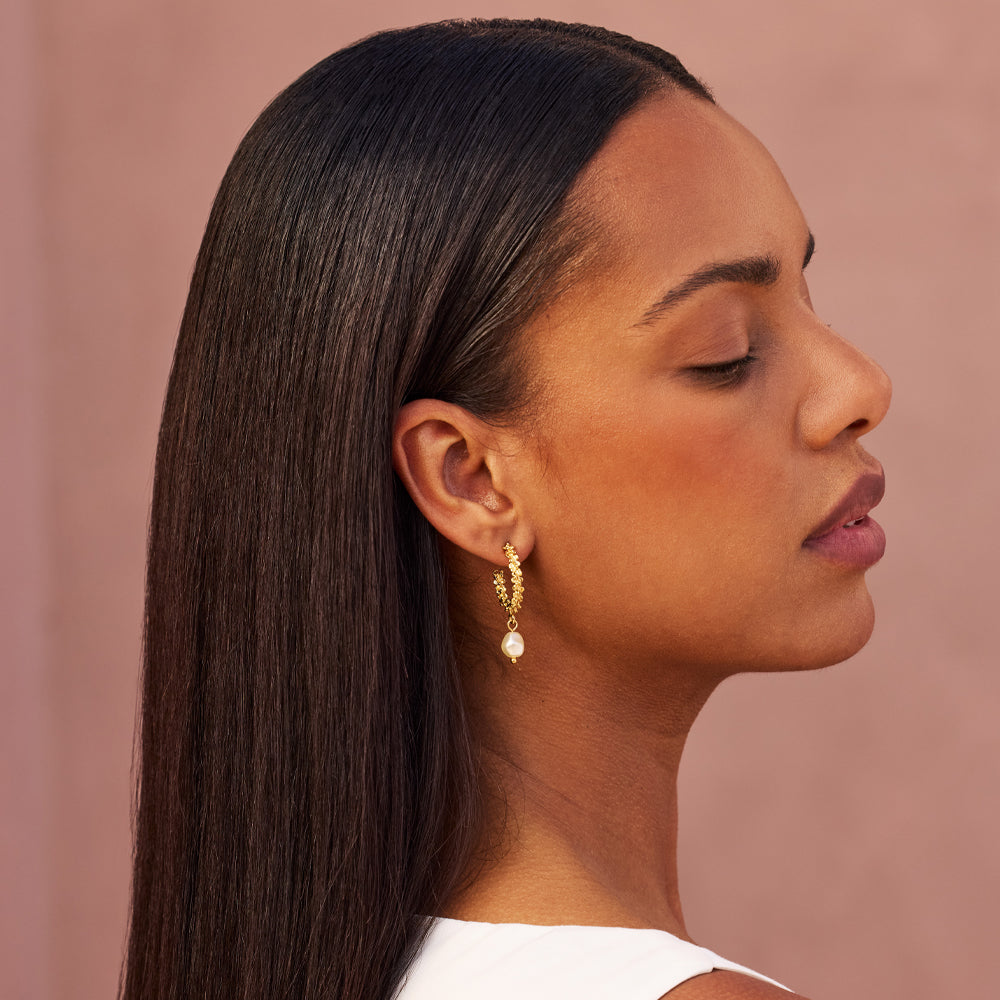The Gemma Pearl Loops bring together playfulness and sophistication. The textured loop silhouette adds movement and dimension, while the delicate pearl detail anchors the design in timeless elegance.
