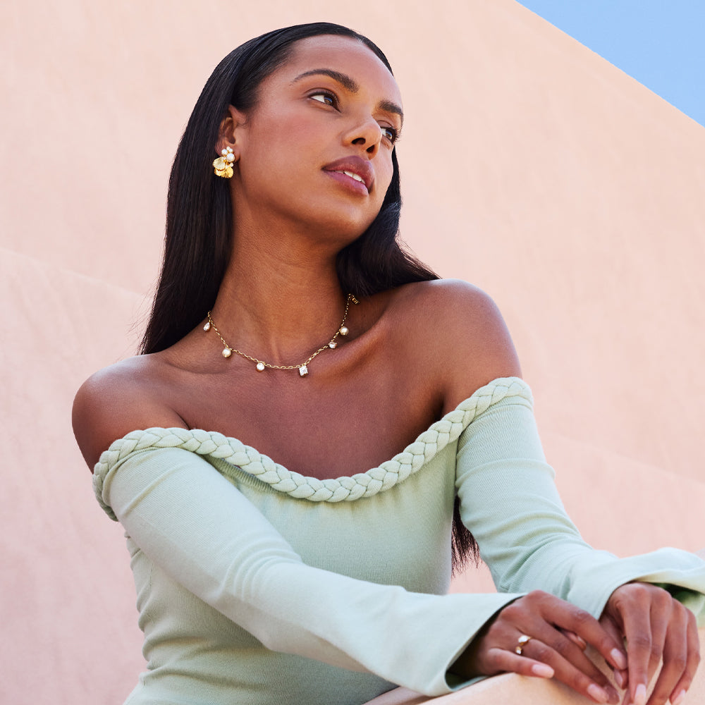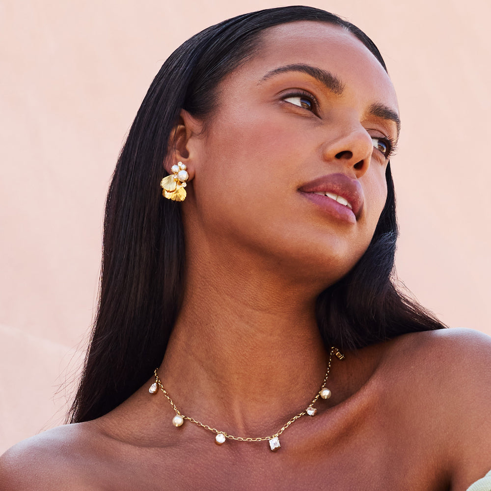 The Lumina Necklace blends the elegance of pearls with the brilliance of crystals in a design that feels both timeless and modern. Its sparkle adds a soft, feminine touch and makes it easy to style - perfect for layering or wearing on its own.