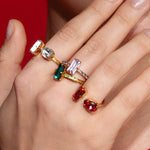 Sculptural and sparkly, with a touch of drama. Noelle mixes shapes and proportions for a modern twist on the cocktail ring. Small effort, big energy.